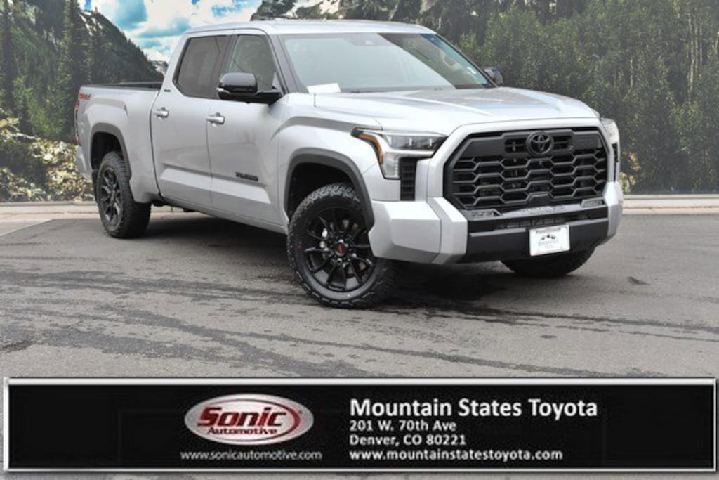 Look at this 2024 Toyota Tundra 4WD Limited. Its Automatic transmission and Twin Turbo Regular Unleaded V-6 3.4 L/210 engine will keep you going. This Toyota Tundra 4WD has the following options: Wheels: 20 Alloy, Wheels w/Machined w/Painted Accents Accents, Vehicle Stability Control (VSC) Electronic Stability Control (ESC), Turn-By-Turn Navigation Directions, Trip Computer, Transmission: 10-Speed Electronic Controlled Auto -inc: intelligence (ECT-i), sequential shift mode, uphill/downhill shift logic and TOW/HAUL driving modes, Transmission w/Driver Selectable Mode and Oil Cooler, Trailer Wiring Harness, Tires: 265/60R20, and Tire Pressure Monitor System (TPMS) Low Tire Pressure Warning. Test drive this vehicle at Mountain States Toyota, 201 W 70th Ave, Denver, CO 80221.